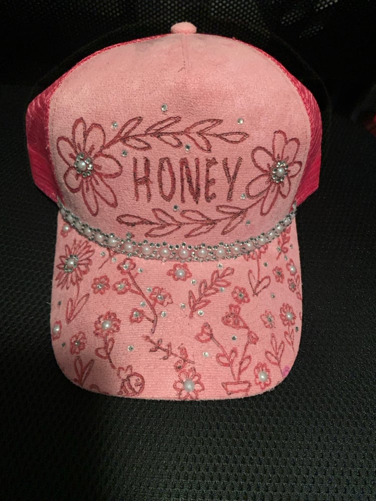 Honey Floral Pink Trucker Snapback Hat – Rhinestone Boho Hat