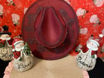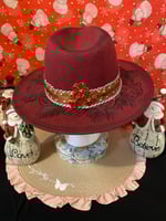 Custom hand-burned Christmas Ornaments design, adorned with Christmas theme ribbons, a vintage Santa Claus brooch. Also has the phrase "Peace, Hope, Joy", burned on the inside bottom brim. Inside band has a ribbon to adjust to most smaller head sizes. One size fit most.