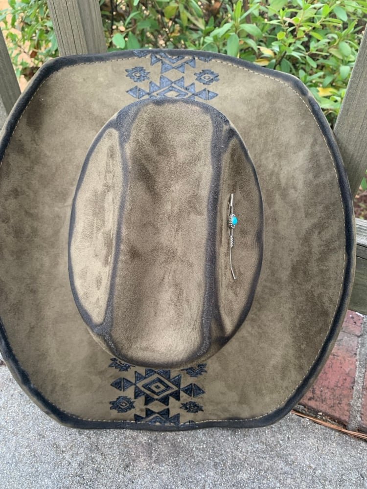 Custom hand-burned "Wild and Free" Aztec Tribe Native design with horse in the back of the crown and arrows on both sides. Adorned with a belt and an Arrow hair pin. Inside band has a ribbon to adjust to most smaller head sizes. One size fit most.